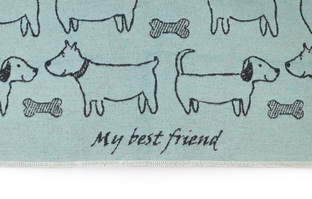 Hier siehst Du die Haustierdecke "Best Friends" in mintgrün/anthrazit, Grösse 70/90cm. Kuscheliger Einsatz im Hundebett, auf der Couch, im Auto, für unterwegs ....