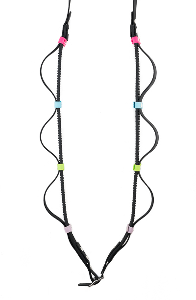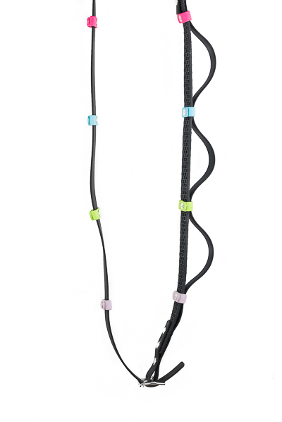 Dann ist ein Handicap auch mal nur einseitig und manchmal soll es einfach nicht auffallen. Dafür ist dieser Zügel teilbar, d.h. wir haben diesen Zügel auch für einen 3er Satz hergestellt. Man kann den einseitigen Schlaufenzügel mit einem normalen schwarzen Therapiezügel mit den gleichen farbigen Stegen kombinieren - oben zusätzlich bestellbar.